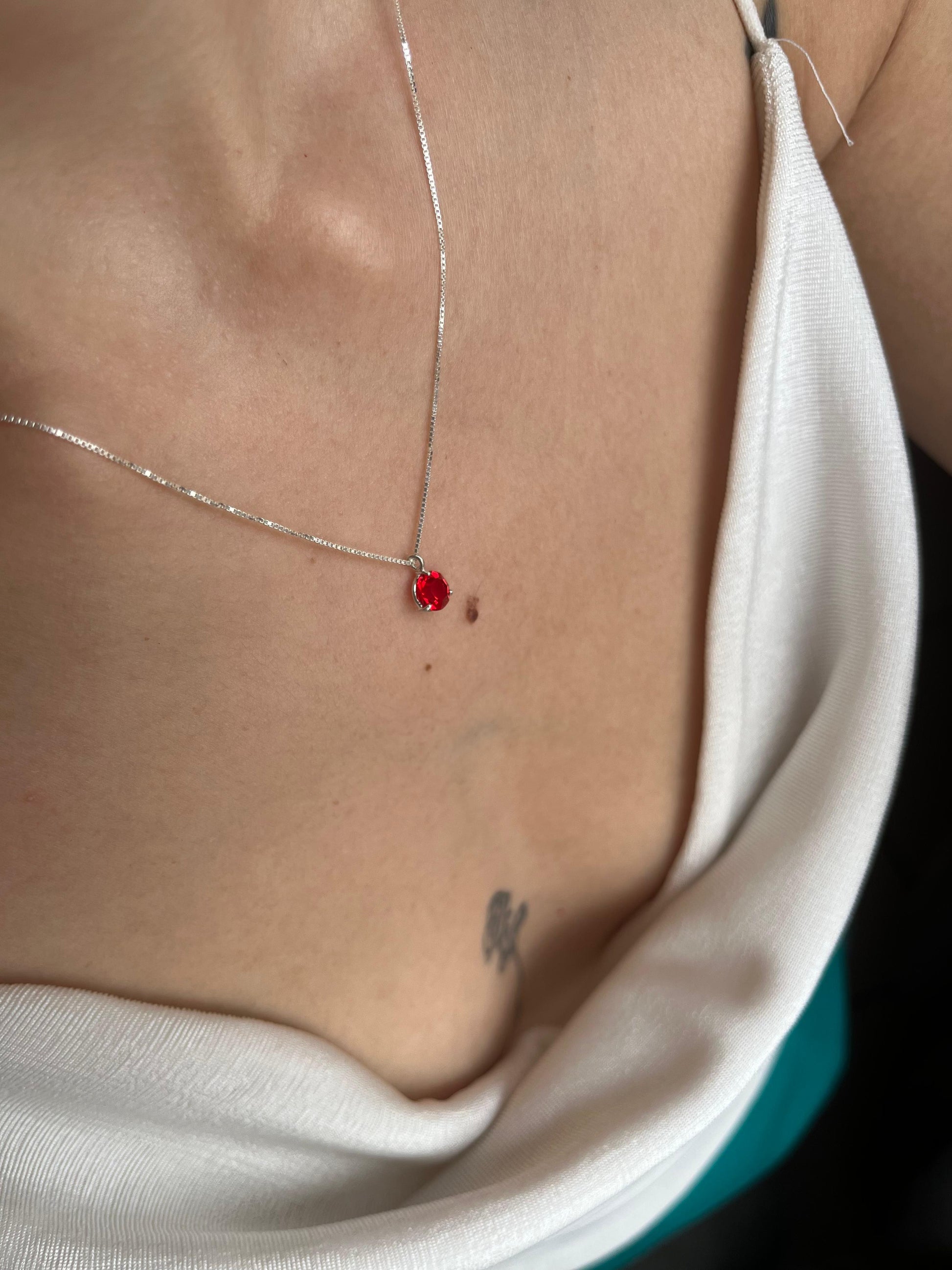 COLAR DE PRATA 925 - PONTO DE LUZ - VERMELHO